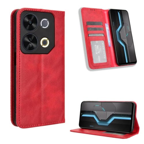 Funda de Cuero Itel P65 4G con Textura Retro y Hebilla Magnética (Rojo)