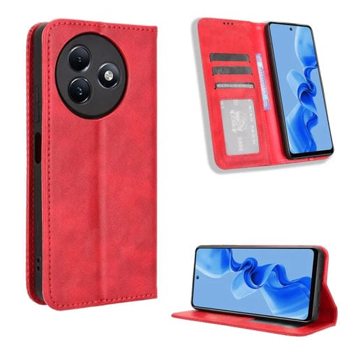 Funda de Cuero Itel S24 4G S667Ln con Textura Retro y Hebilla Magnética (Rojo)