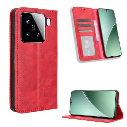 Funda De Cuero Con Textura Retro Y Hebilla Magnética Para Xiaomi 15 (Roja)