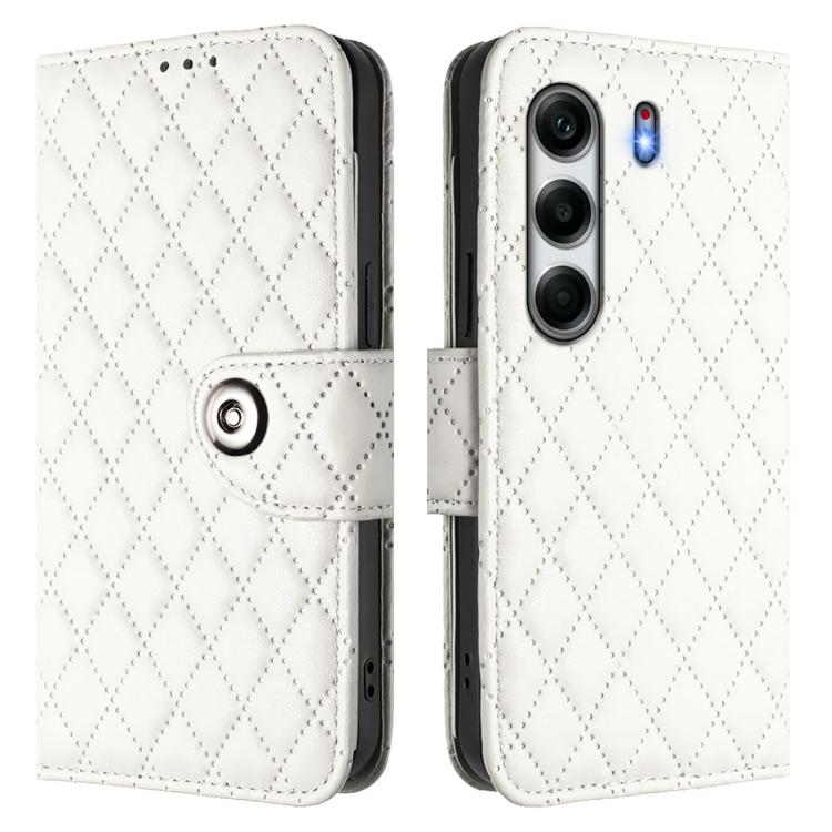Funda de Cuero con Textura Rómbica y Cordón para Tecno Camon 40 Pro 4G (Blanco)