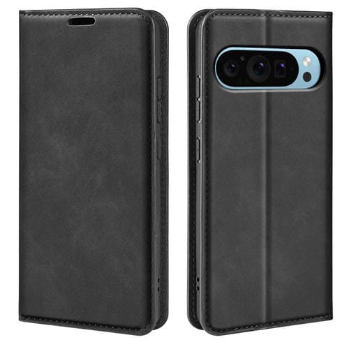 Funda de Cuero con Ventosa Magnética para Google Pixel 9 y 9 Pro (Negra) Retro-Skin