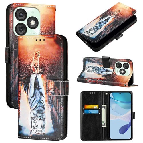 Funda Cuero Tejido Liso con Dibujo para Teléfono Itel A50 (Gatos y Tigres)