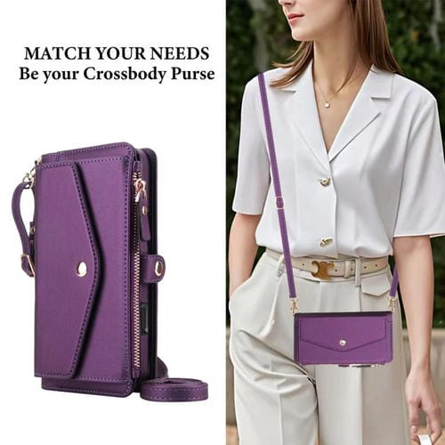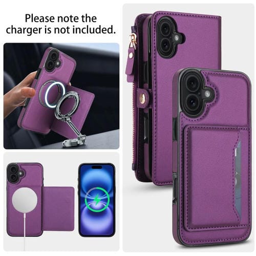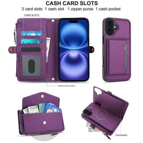 Funda de cuero desmontable con cordón para iPhone 17 (morado oscuro)