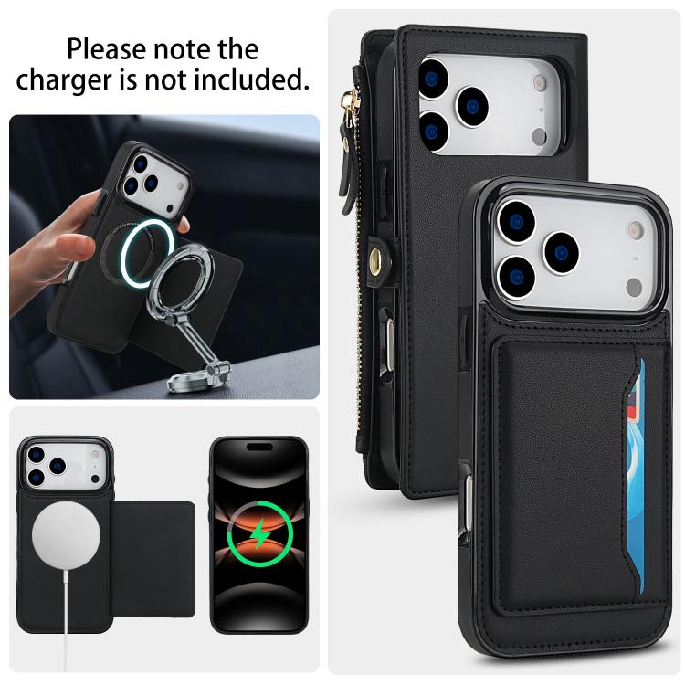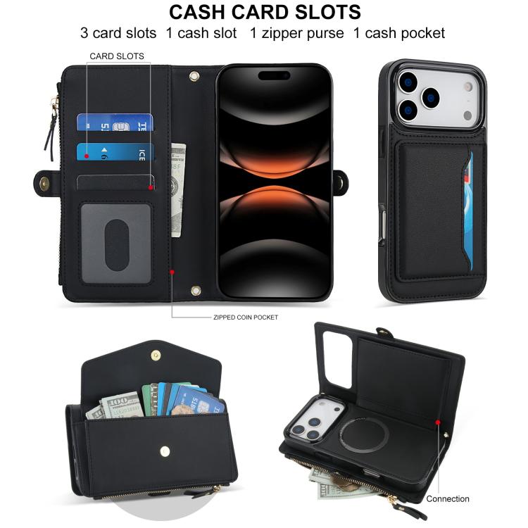 Funda de cuero desmontable con cordón para iPhone 17 Pro Max (negro)