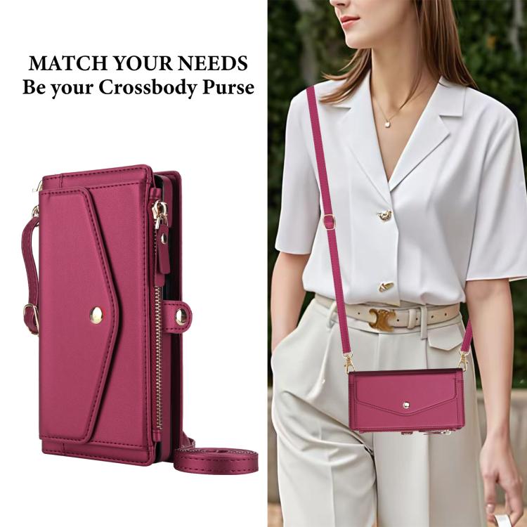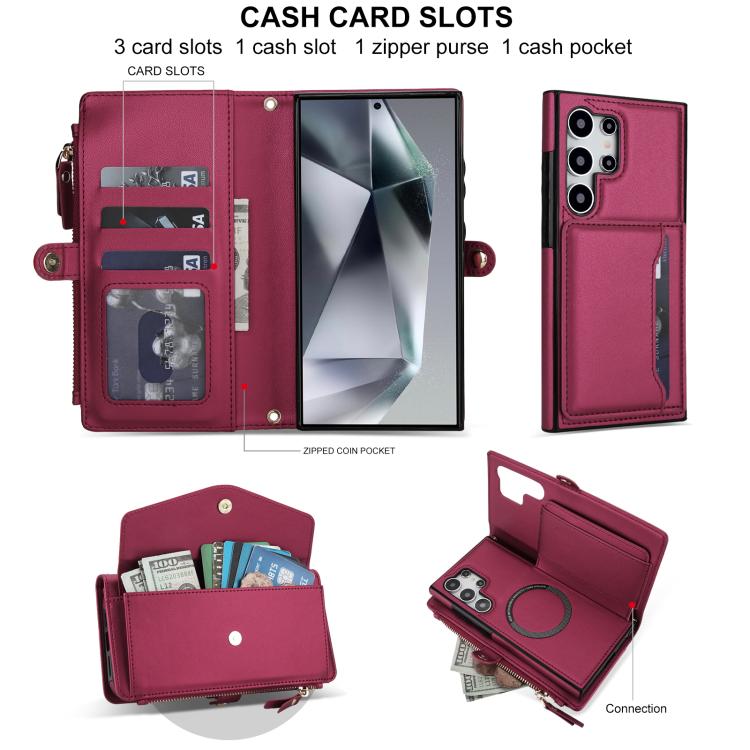 Funda de cuero desmontable con cordón para Samsung Galaxy S24 Ultra 5G (multifuncional, color rojo)