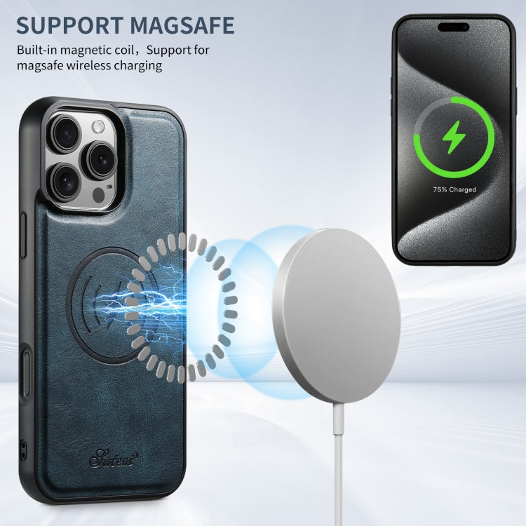 Funda de Cuero Desmontable Suteni H15 Magsafe Oil Eax Tipo Billetera para iPhone 16 Pro (Azul)