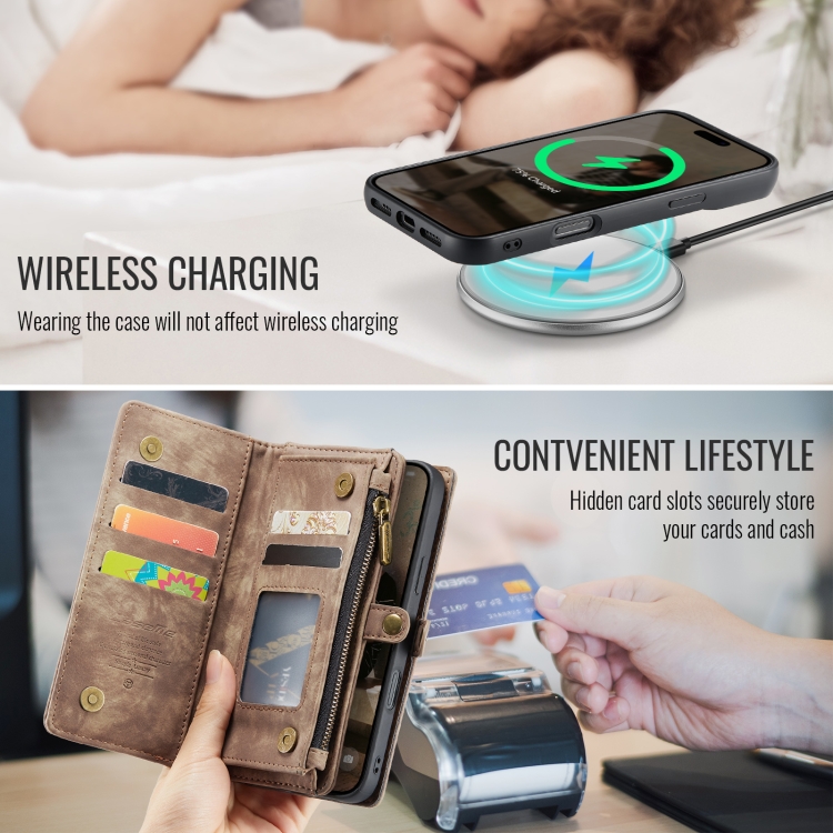 Funda de Cuero Caseme 008 para iPhone 16 Pro Max Desmontable y Multifuncional (Marrón)