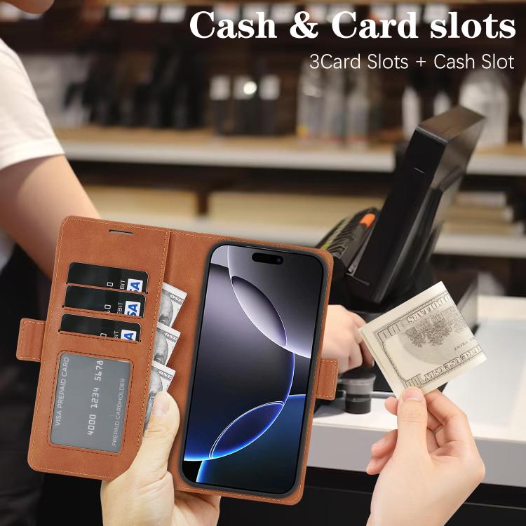 Funda de cuero dividido 2 en 1 con anillo magnético fuerte Kalebol MagSafe para iPhone 17 (marrón)