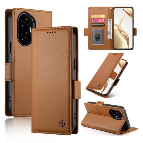 Funda de Cuero Esmerilado con Hebilla Lateral Magnética para Honor 300 Pro/300 Ultra (Marrón)