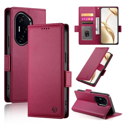 Funda de Cuero Esmerilado con Hebilla Lateral Magnética para Honor 300 Pro/300 Ultra (Rojo Vino)