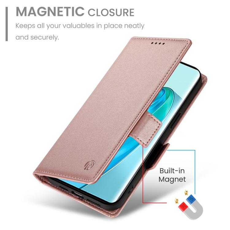 Funda de Cuero Esmerilado con Hebilla Magnética para Honor X9C Global y Magic7 Lite (Oro Rosa)