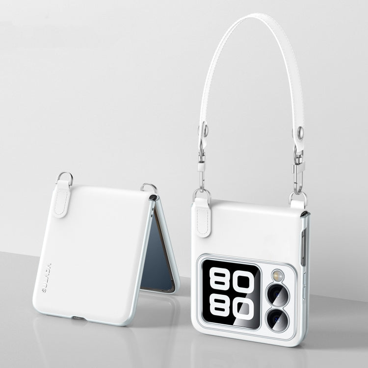 Funda de Cuero Líquido con Correa y Tacto de Piel Sulada para Huawei Nova Flip (Blanco)
