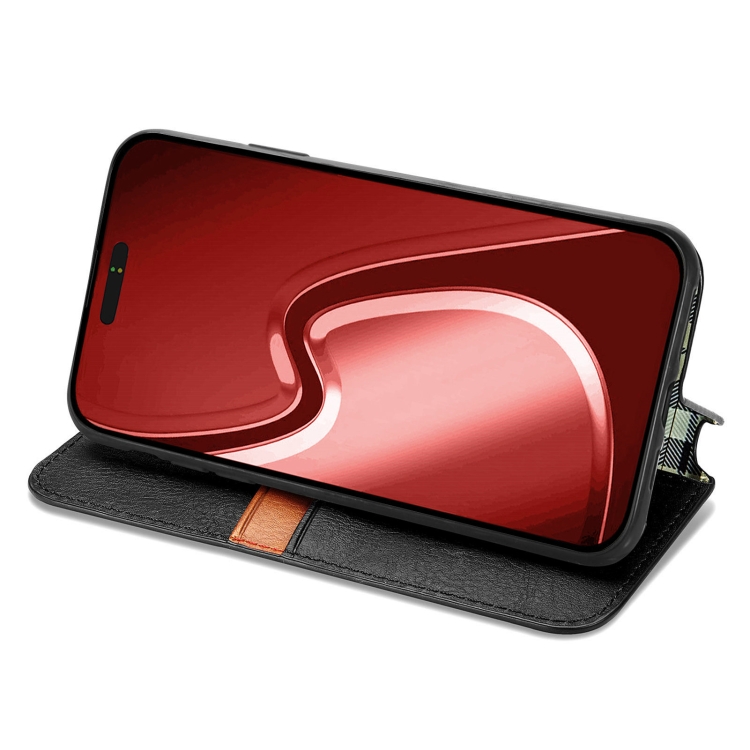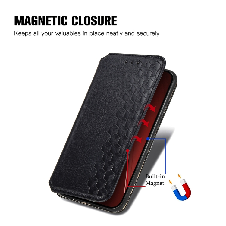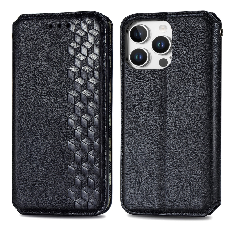 Funda de Cuero Magnética para iPhone 16 Pro Max con Diseño de Cuadrícula Cúbica (Negra)