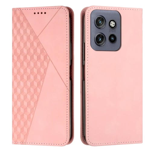 Funda de Cuero Magnética Motorola Edge 50 Neo con Diseño de Diamante y Tacto de Piel (Oro Rosa)