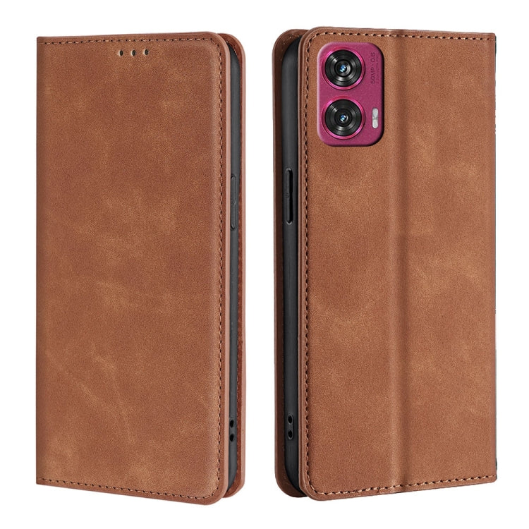 Funda de Cuero Magnética para Motorola Edge 50 Fusion 5G (Marrón Claro)