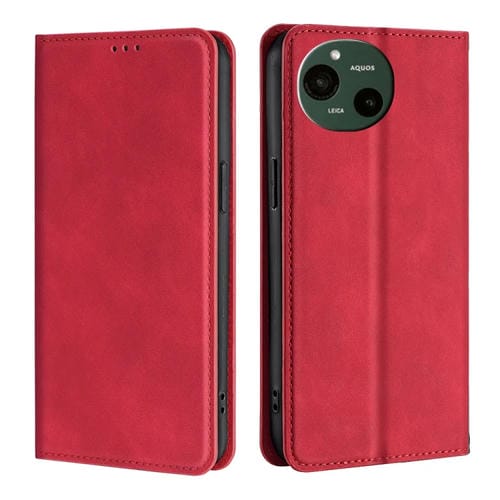 Funda de Cuero Magnética para Sharp Aquos R9 con Tacto de Piel (Roja)