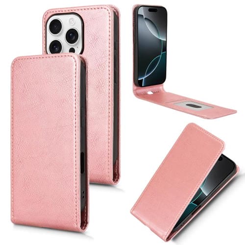Funda de Cuero Magnética con Tapa Vertical para iPhone 16 Pro (Oro Rosa)