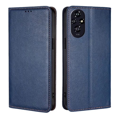 Funda de Cuero Magnética para Honor 200 5G con Acabado Brillante y Aceite Sólido (Azul)