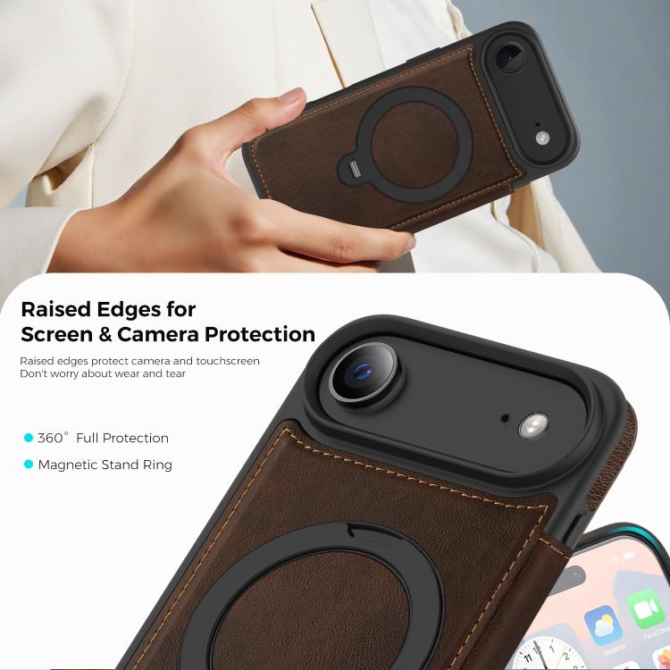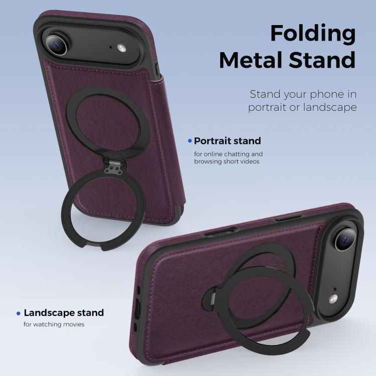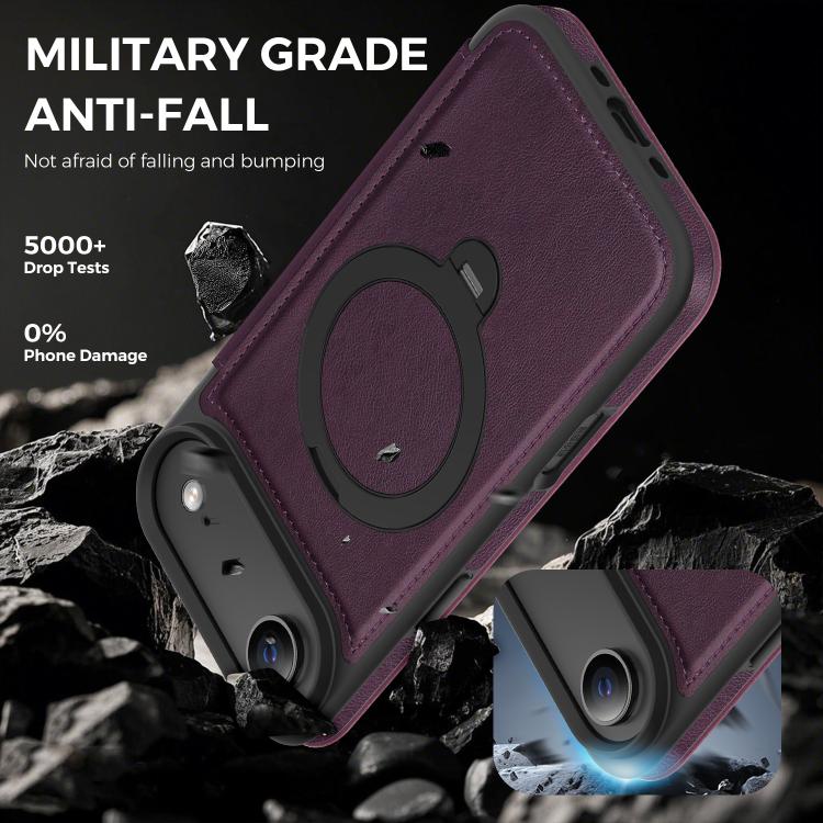 Funda de cuero MagSafe RFID para iPhone 17 Knight Shield con rotación de 360 grados (morado)