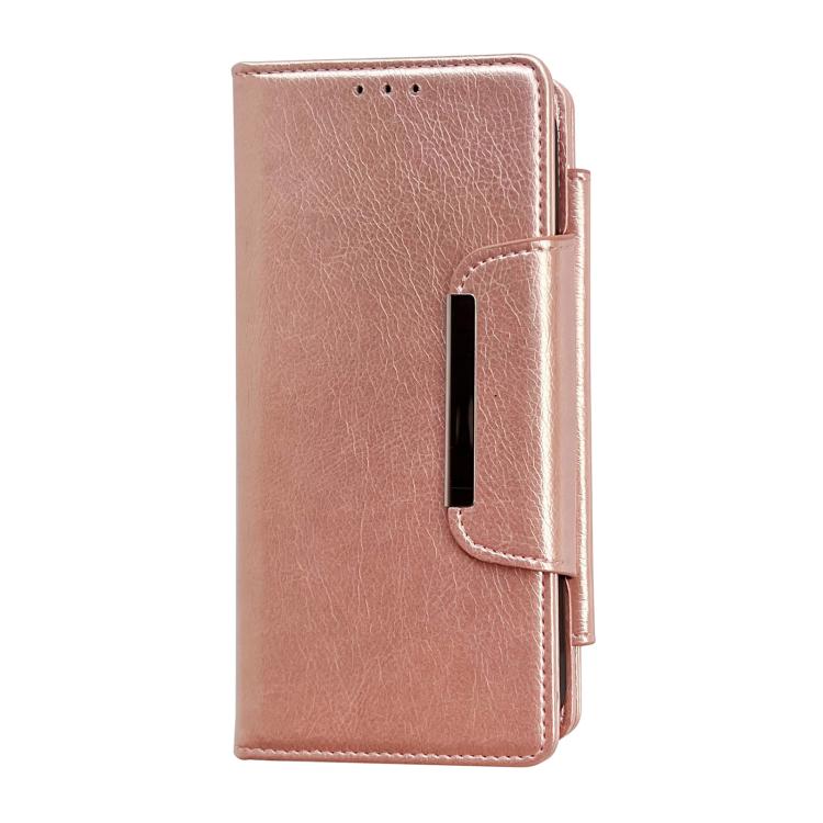 Funda de cuero multifuncional tipo billetera para iPhone 17 con capacidad para 7 tarjetas (oro rosa)