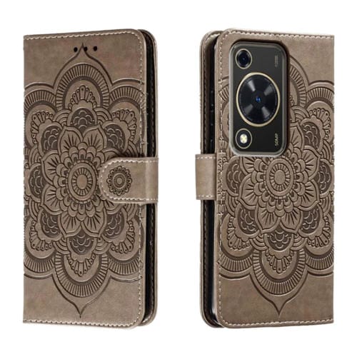 - 1x Funda de Cuero para Huawei Enjoy 70 con Estampado Mandala y Sol (Gris)