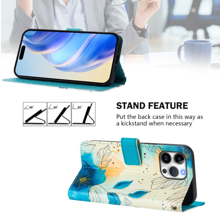 Funda de Cuero para Teléfono con Patrón de Dibujo Artístico iPhone 16 Pro Max (Flores Florecientes)