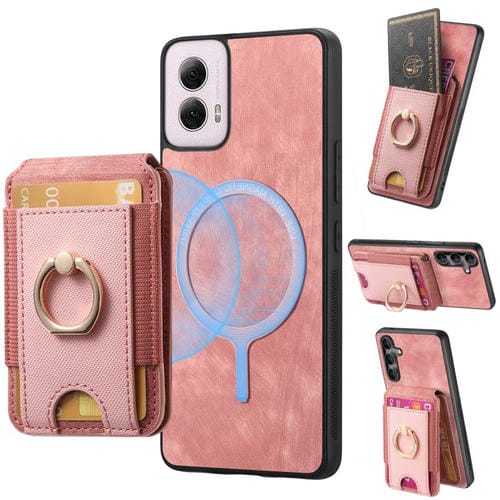 Funda de Cuero para Motorola Moto G Power 5G 2024 con Soporte Magnético Divisible (Rosa)