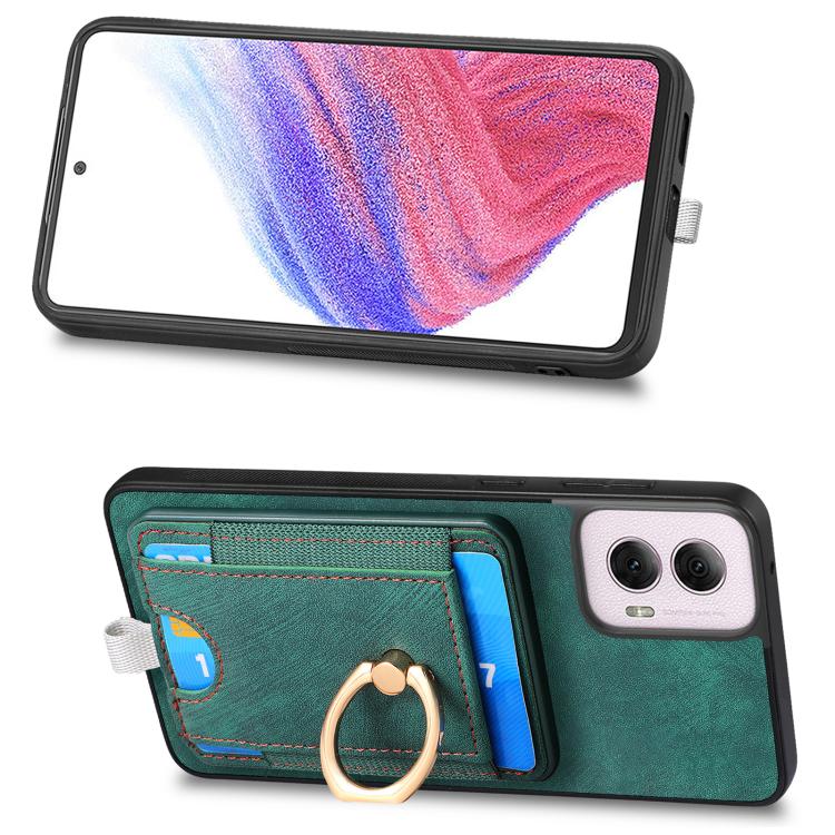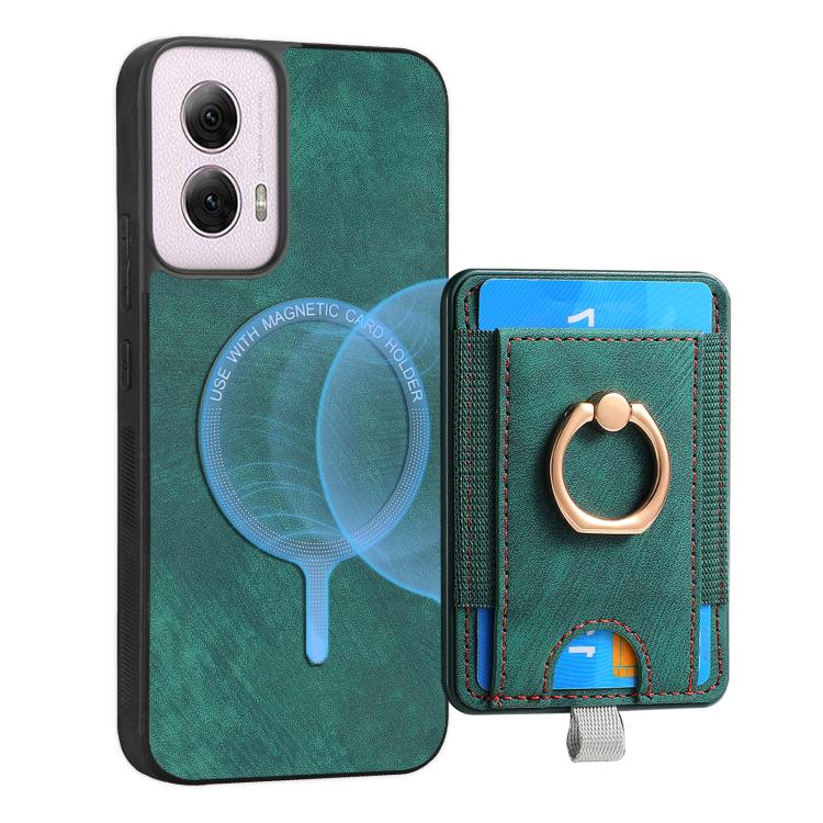 Funda de Cuero con Tarjetero Magnético Divisible para Motorola Moto G Power 2024 5G (Verde)