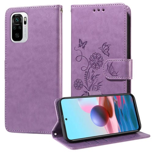 Funda de Cuero para Teléfono Redmi Note 11 Se 4G con Diseño de Mariposas y Flores En Relieve (Morado)