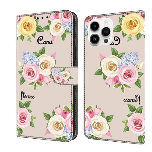 Funda de Cuero para iPhone 16 Pro Max Pintada a Mano con Flores de Colores
