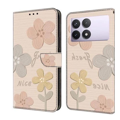 Funda de Cuero Pintada a Mano para Redmi K70E (Flores Beige)
