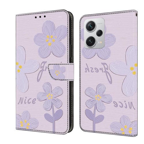 Funda de Cuero Pintada a Mano para Redmi Note 12 Pro+ (Flores de Color Morado Oscuro)