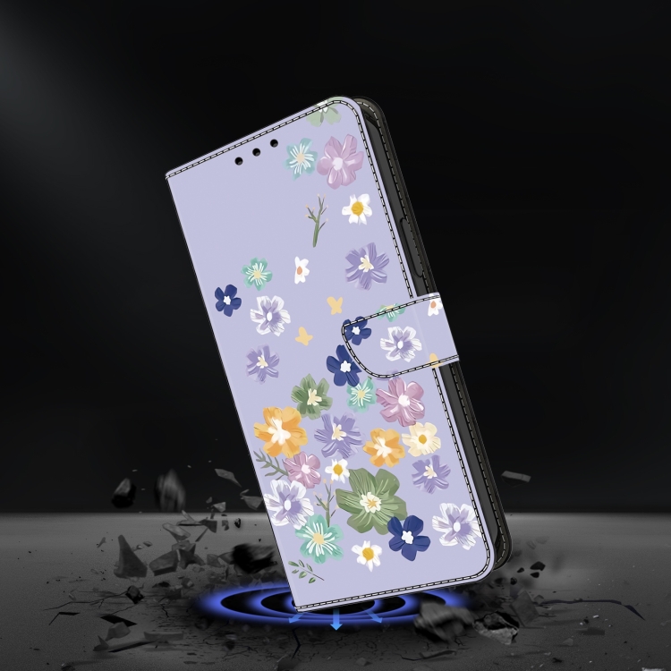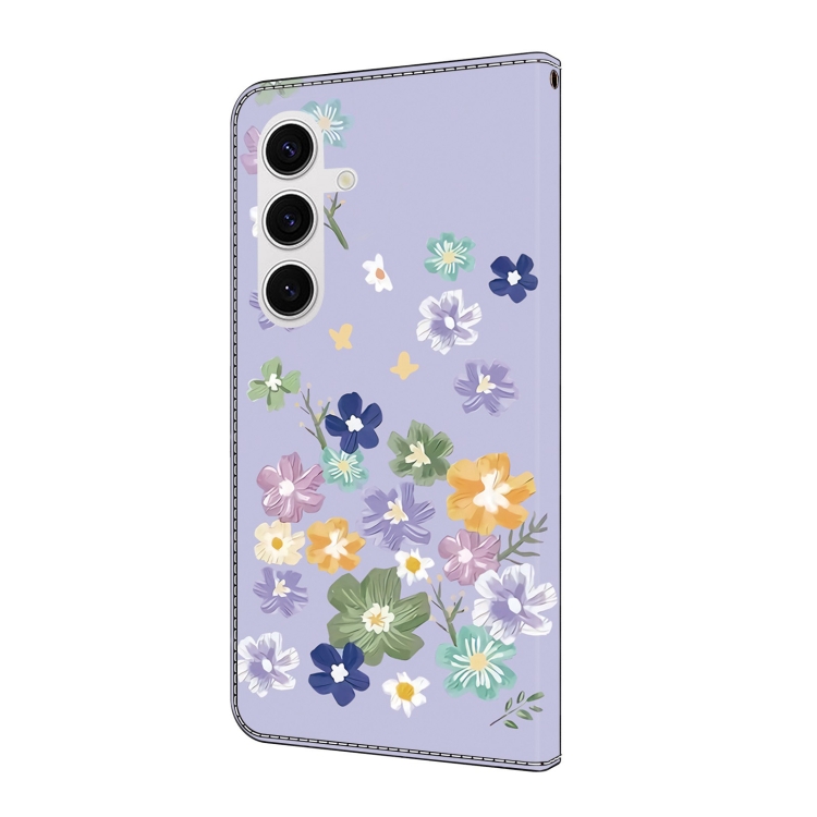 Funda de Cuero Samsung Galaxy A14 4G/5G Pintada a Mano Floral (Morado)