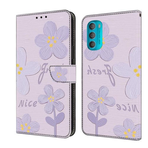 Funda de Cuero Pintada a Mano para Motorola Moto G71 5G (Flores Morado Oscuro)