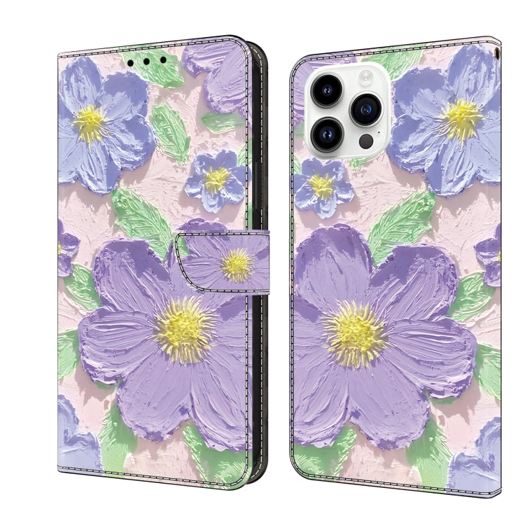 Funda de Cuero iPhone 16 Pro Max Pintada al Óleo Flores Moradas