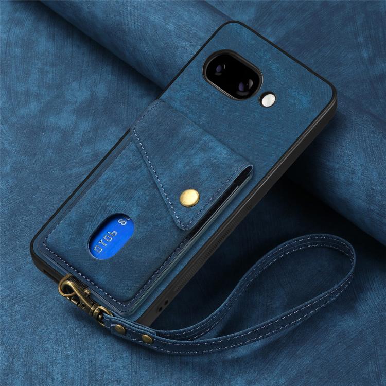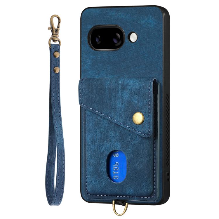 Funda de Cuero Plegable con Tarjetero para Google Pixel 9A con Correa (Azul)