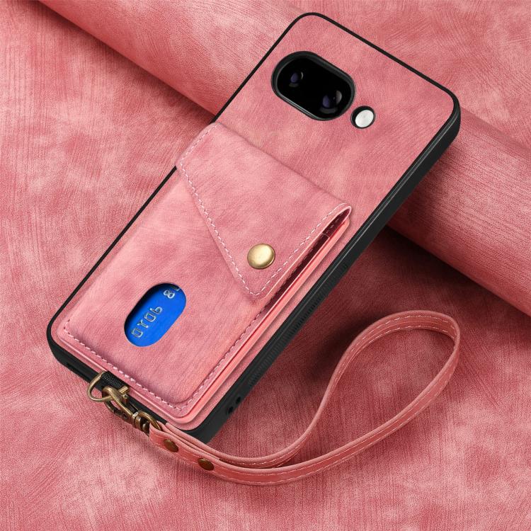 Funda de Cuero Plegable Tipo Billetera con Correa para Google Pixel 9A (Rosa)