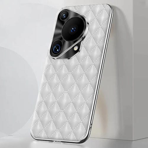 Funda de Cuero Pu con Textura Rómbica y Borde Plateado para Huawei Pura 70 Ultra (Blanca)