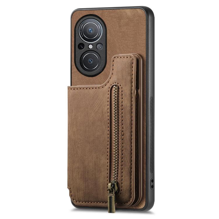 Funda de Cuero Retro con Cremallera para Huawei Nova 9 Se (Marrón)