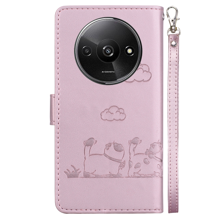 Funda de Cuero Rfid con Diseño de Gatos para Redmi A3 (Oro Rosa)