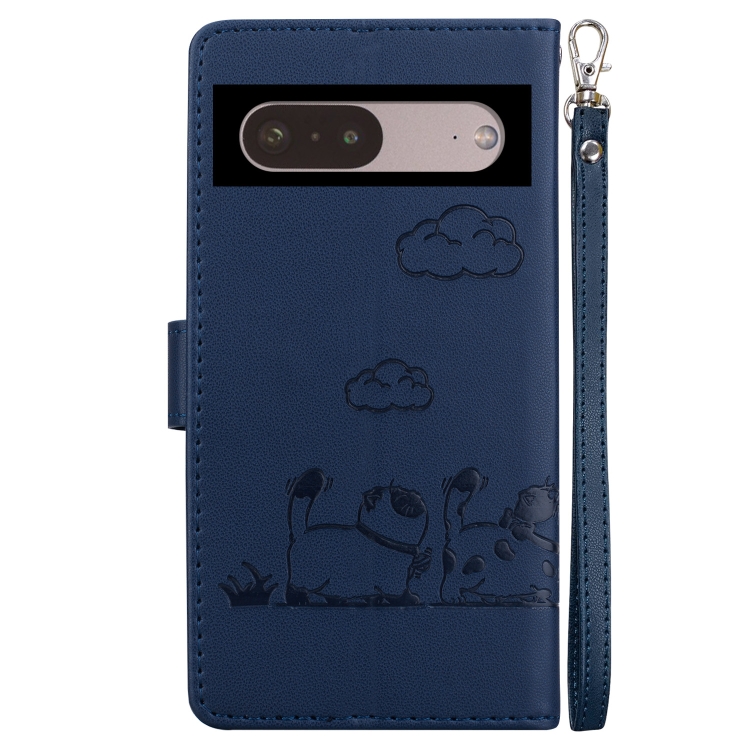 Funda de Cuero Rfid para Google Pixel 7 Pro con Diseño de Gatos (Azul)