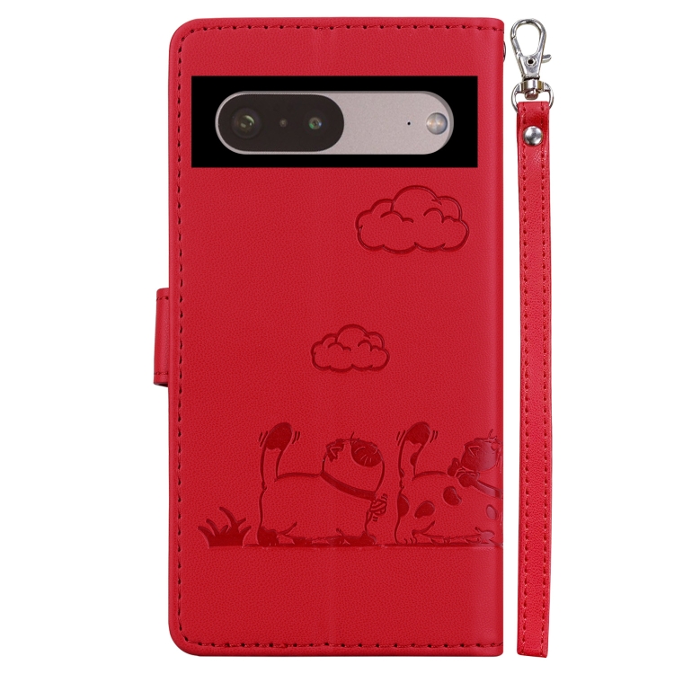 Funda de Cuero Rfid para Google Pixel 7 Pro con Diseño de Gatos (Rojo)