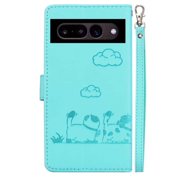 Funda de Cuero Rfid para Google Pixel 7 con Diseño de Gatos (Verde)