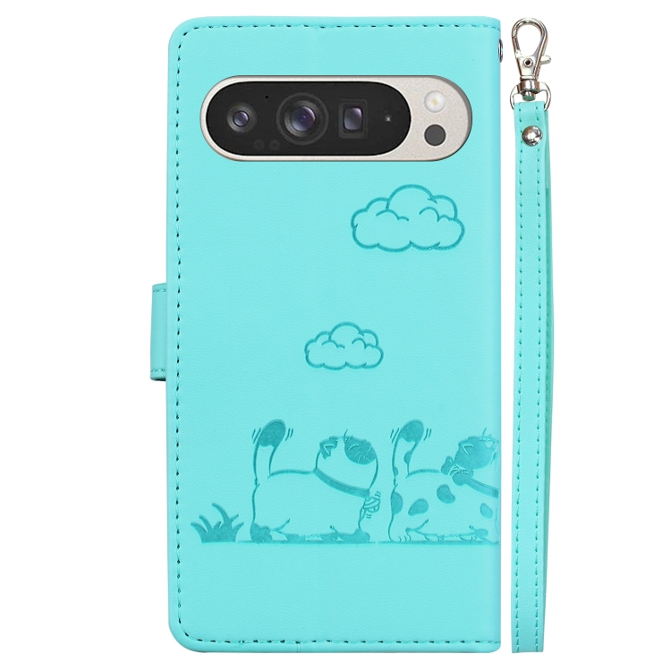 Funda de Cuero Rfid para Google Pixel 9 Pro Xl con Diseño de Gatos (Verde)