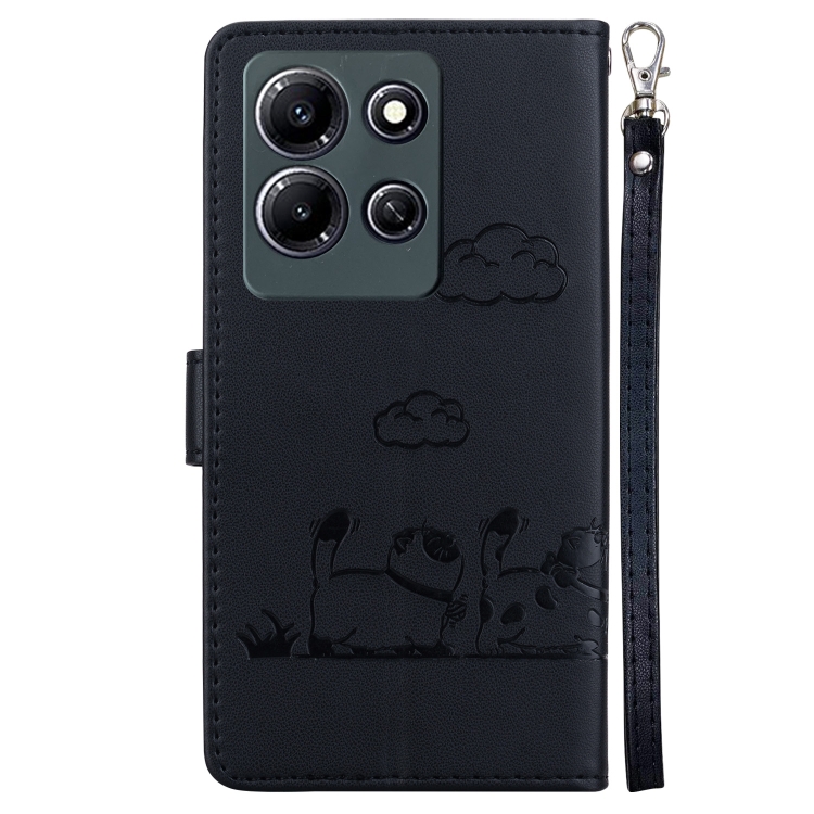 Funda de Cuero Rfid para Infinix Note 30I con Diseño de Gatos (Negra)