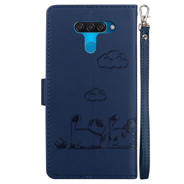 Funda de Cuero Rfid para LG K50/Q60 con Diseño de Gatos (Azul)