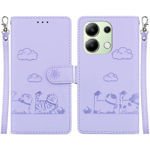 Funda de Cuero Rfid con Diseño de Gatos Lindos para Redmi Note 13 4G (Morado)