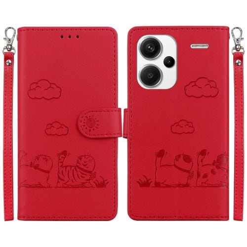 Funda de Cuero Rfid con Diseño de Gatos Lindos para Redmi Note 13 Pro+ 5G (Roja)