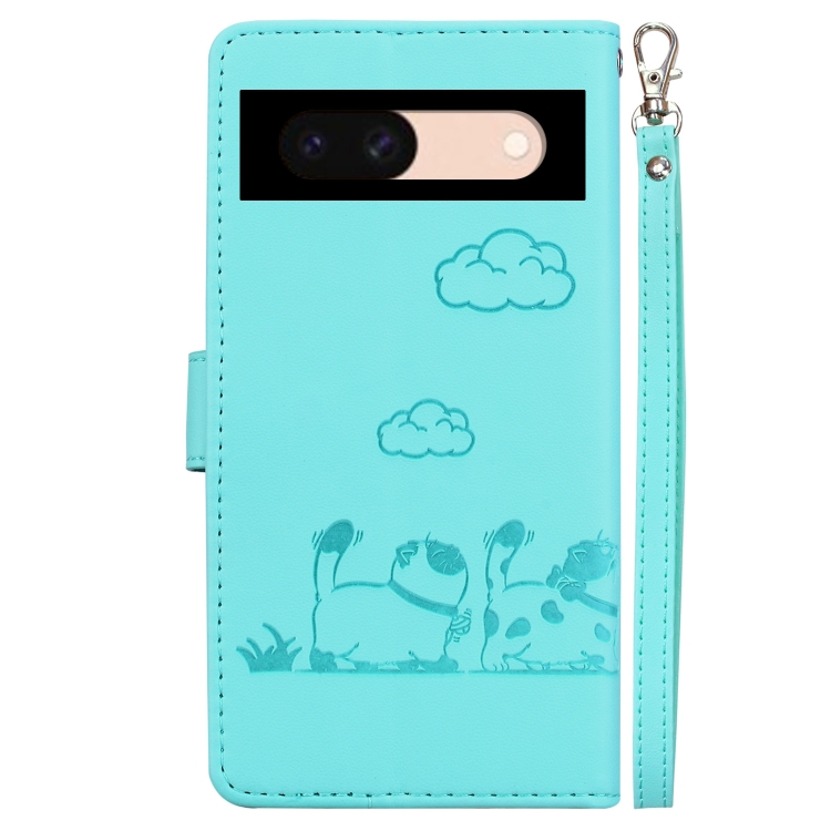 Funda de Cuero Rfid para Google Pixel 8A con Diseño de Gatos (Verde)