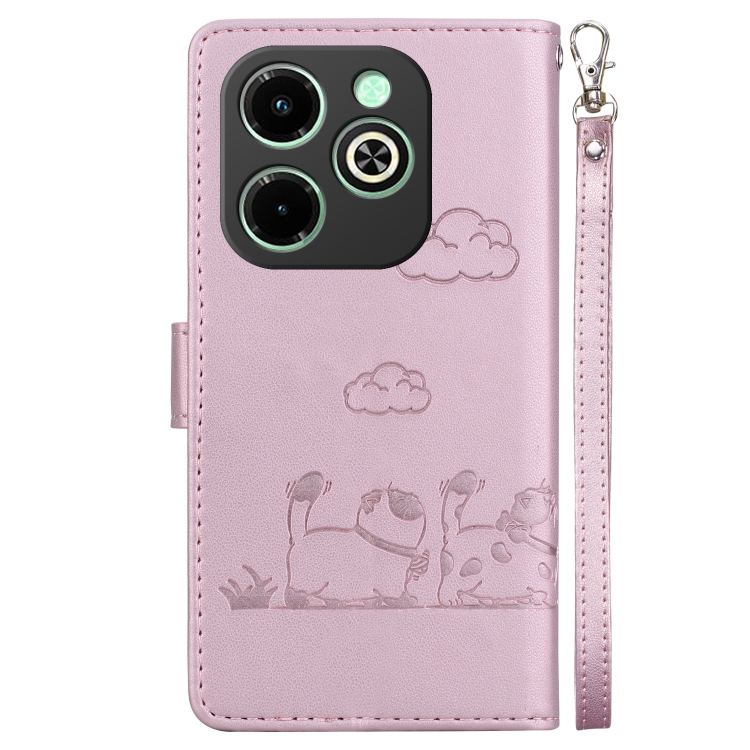 Funda Cuero Rfid para Infinix Smart 8/8 HD/Hot 40I con Diseño de Gatos (Oro Rosa)
